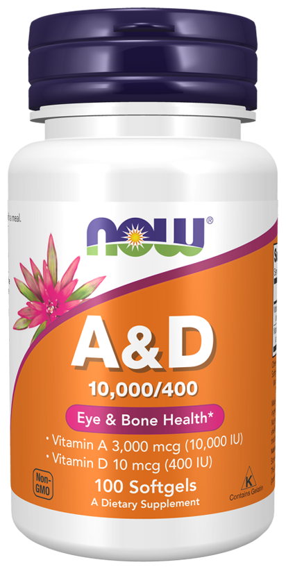 NOW A&D 10000/400 IU, 100 капсул