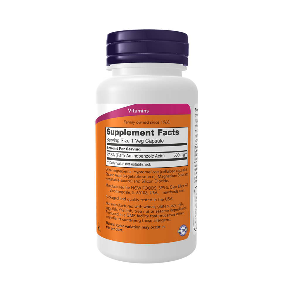 ПАБК (пара-аминобензойная кислота) содержится в таких продуктах питания, как зерновые, яйца, молоко и мясо. Она является прекурсором фолиевой кислоты. Микрофлора нашего кишечника может синтезировать из нее фолиевую кислоту. ПАБК также может помочь клеткам бороться с окислительным стрессом.